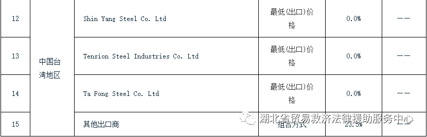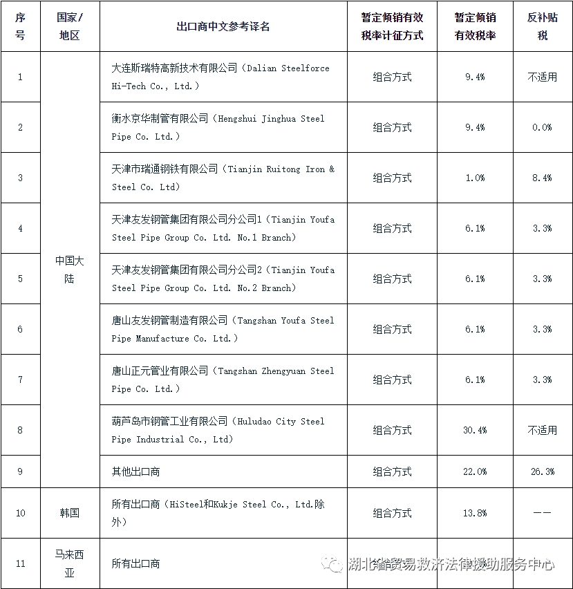 附表:澳大利亚对涉华焊缝管反倾销和反补贴日落复审终裁征税表